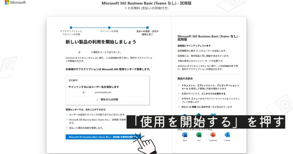 Microsoft の画面は時期や契約状況で少し変わることがあります。